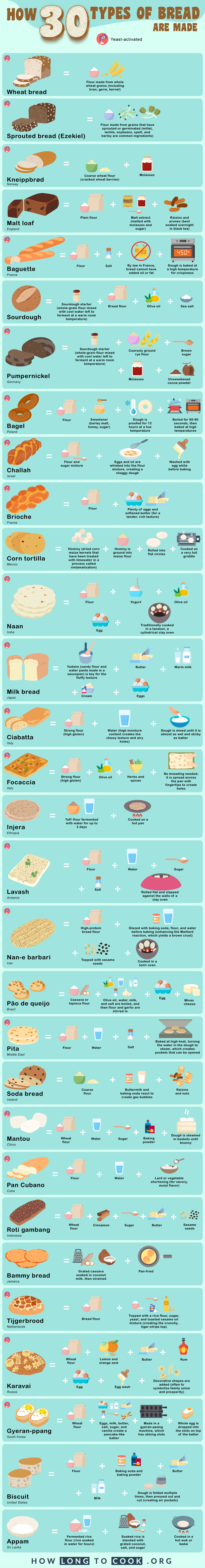 Many of the breads included on this list are made possible through yeast and other leavening agents. What is the science behind yeast? On a basic level, yeast is a single-celled organism that lies dormant until it is activated by warm water. It then feeds on the sugars in flour and any sugar added to the dough, producing carbon dioxide that causes the dough to rise. Yeast is the key to many raised breads, and it helps create the distinctive flavors and aromas that we associate with bread.