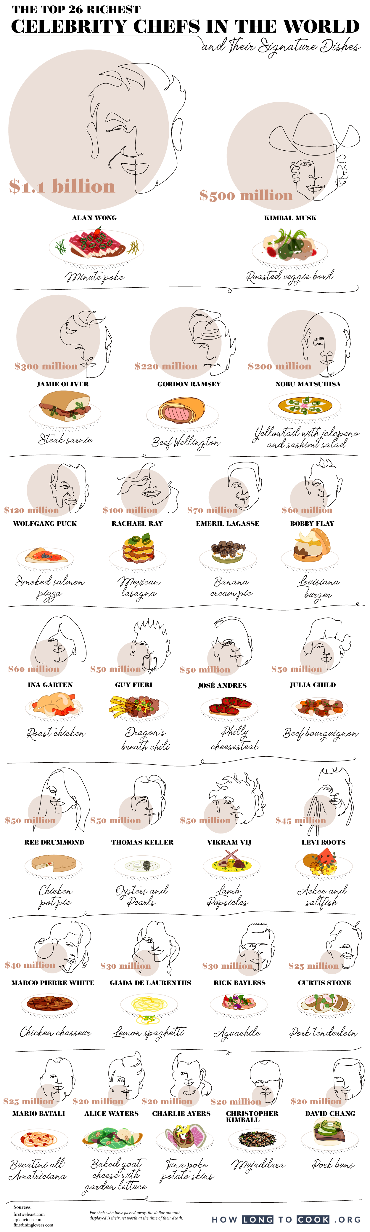 Who is the richest chef in the world? While Gordon Ramsay and his stunning array of television shows may come to mind, the real answer may surprise you! The team at How Long to Cook Calculator has gathered a delicious dossier on the wealthiest chefs in the world, including famous chef signature dishes for each one in case you feel hungry and inspired: